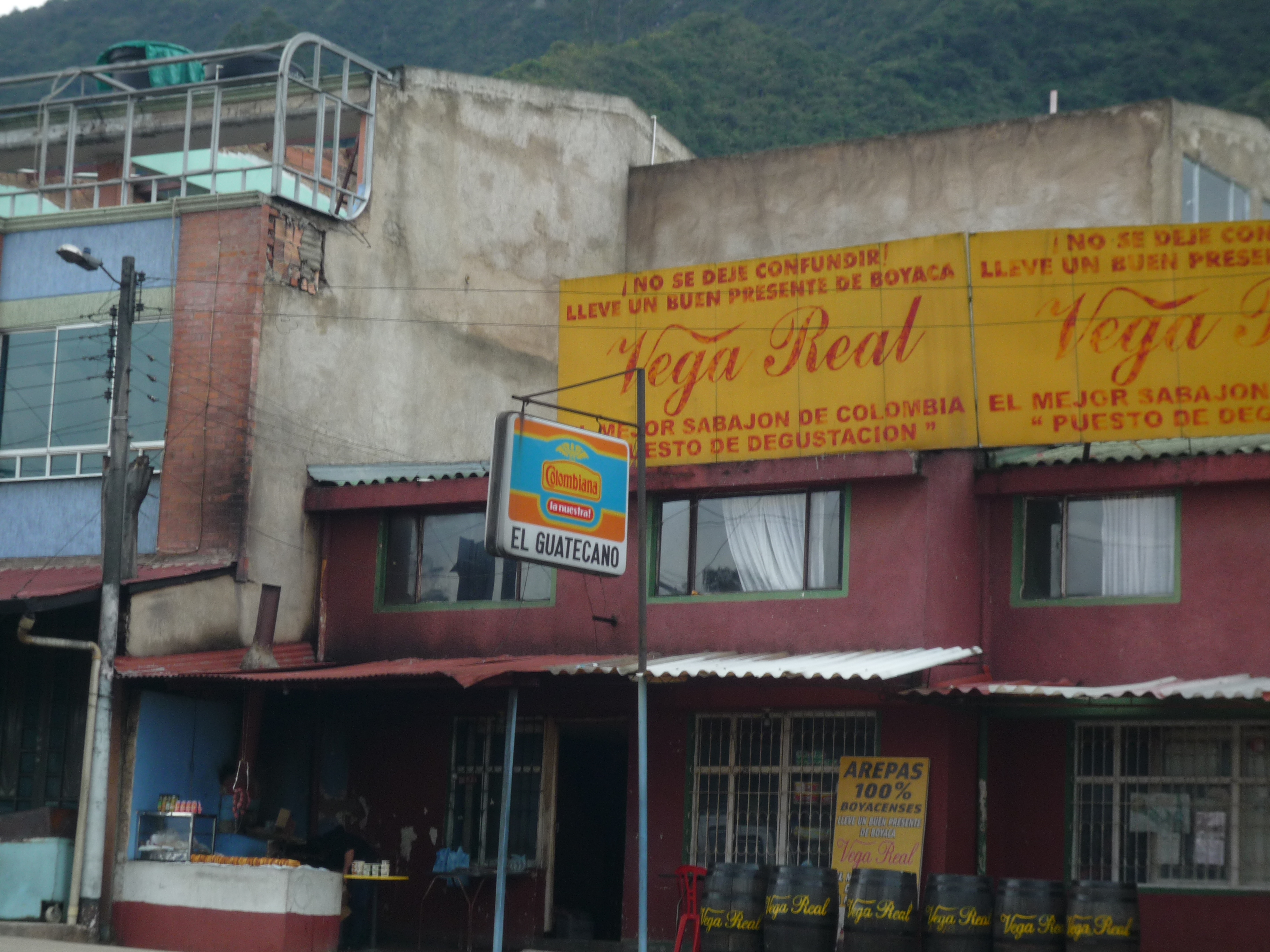 Tout au long de la route, vous verrez s’aligner des sortes de baraques à frites locales : on y vend les « arepas », l’en-cas national ! Ces galettes de maïs, fourrées au fromage, peuvent s’accompagner de viandes grillées : c’est le « fast food colombien » ! On peut aussi opter pour le poulet rôti… à manger avec les doigts revêtus de gants en plastique, qu’on vous propose à la place des couverts ! Les quartiers de poulet, bien dorés et enrobés d’épices, sont généralement accompagné des « papas » : la patate locale, coupée en grosses frites succulentes. Le tout pour quelques poignées de pesos !