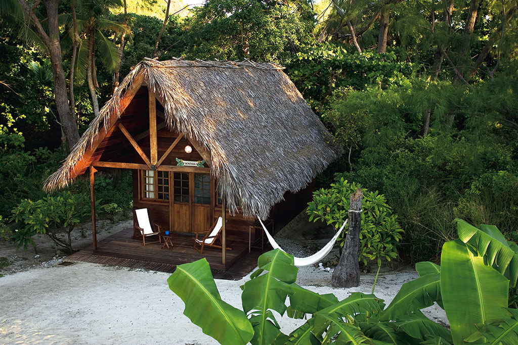Pourtant, ça y ressemble : le Constance Lodge Tsarabanjina aligne tout de même cinq étoiles qui semblent bien méritées. Mais le vrai luxe, bien sûr, c’est celui qu’offre la nature foisonnante qui environne ces vingt-cinq bungalows isolés et discrets, dont le toit de chaume se fond dans les palmes des arbres tropicaux. Chacun est doté d’une terrasse privée qui ouvre sur ce magnifique lagon, préservé et tranquille, entre montagnes verdoyantes et sable immaculé.