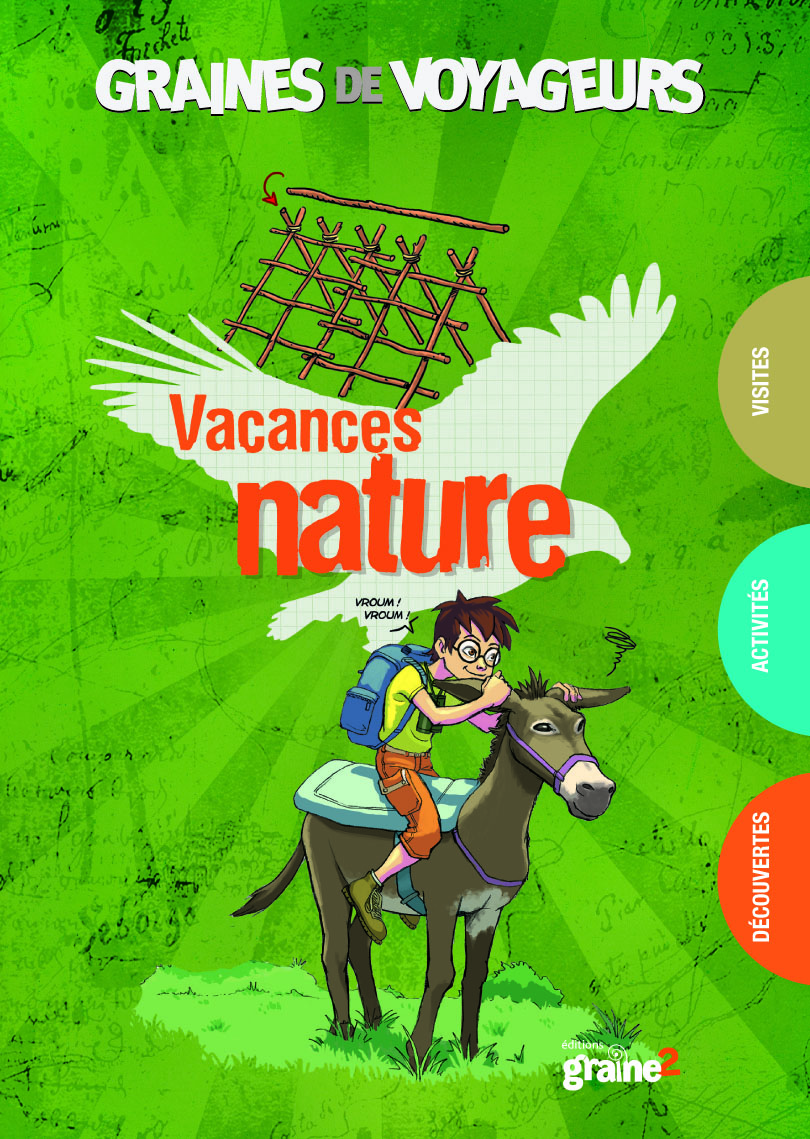 Une approche pratique et documentaire, des jeux, des propositions d’activités, enrichissent ce guide thématique de 112 pages intitulé « Vacances Nature », conçu pour profiter au maximum des voyages et séjours en plein air. Comme les autres ouvrages de la collection, il s’articule autour de trois grandes rubriques : la partie guide, le carnet de visites personnalisable et la carte détachable. Les pages documentaires proposent aux enfants de se mettre dans la peau d’un botaniste, d’un zoologiste, d’un paysagiste, d’un astrologue et même d’un druide de la période gauloise ! Il est également riche en conseils pratiques : apprendre à distinguer les champignons, reconnaître les traces d’animaux… ou construire une cabane ! On y trouve même des recettes, telles que la salade de fruits à la rose ou la soupe aux orties !