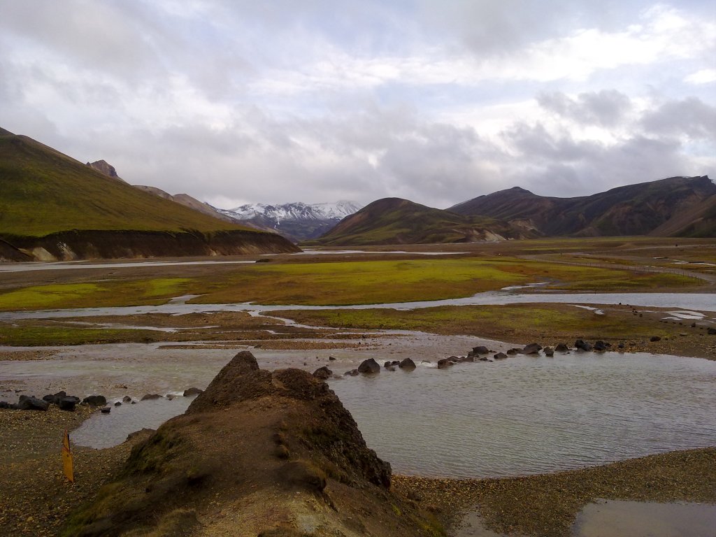 Celui qui se trouve au coeur du Landmanalaugar, pourtant, était au contraire… complet ! Il faut dire qu’il est situé dans un extraordinaire endroit, qu’on n’atteint qu’après plusieurs heures de route en tout-terrain, avec l’impression d’aller… au bout du monde (et de n’être pas sûr d’en revenir !) Et juste à côté du refuge coulent des sources chaudes, alimentant l’un de ces bassins naturels, surmontés de fumée, dans lesquels on se baigne avec délices en toutes saisons.