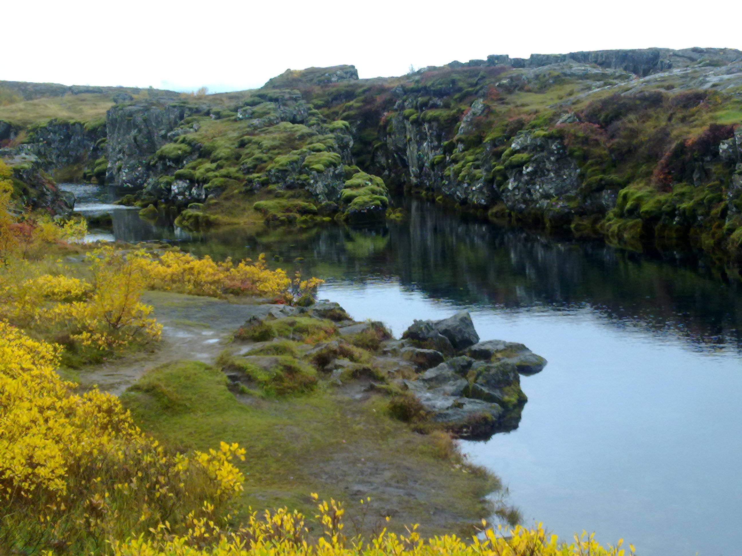 Vous passerez aussi par Gulfoss, site célèbre pour ses impressionnantes chutes d’eau, et par l’incontournable site de Geysir, pour y voir le grand geyser qui donna son nom à tous les autres, environnés d’autres geysers et d’étonnants cratères fumants ou emplis d’eaux, rouges, turquoises… ou d’une incroyable transparence ! Puis à Thingvillir, immense plaine au bord d’une faille géante, jonction de deux plaques tectoniques, où se tenait le premier Parlement islandais (celui des Vikings, peuple moins barbare et plus démocratique qu’on le croit !)… et où fut fondée en la République d’Islande.