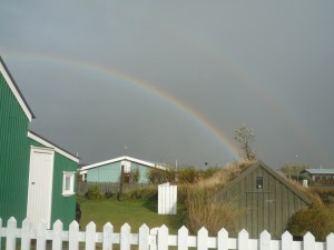 Et le ciel d’octobre, assurément plus gris et pluvieux que celui du mois d’août, offre des compensations : je n’avais jamais vu tant d’arc-en-ciel en si peu de temps, et si bien vus, car ici nul immeuble, nulle maison, nulle fumée industrielle, ne vient troubler l’éclat de leur couleur, estomper leur netteté, casser leur courbe parfaite !