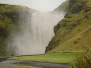 Lorsqu’on quitte la ville par le Sud, on longe les spectaculaires cascades de Skogafoss et Seljalandsfoss; on traverse de minuscules et ravissants villages de pêcheurs, dont Eyarbakki et Stokkseyri (réputé pour leurs restaurants de langoustines); ce sont des hameaux aux couleurs vives face au noir des plages, dont le sable vous fouette la figure à vous faire mal; vous longez des falaises balayées par des vents d’une puissante suffisante pour relever les chutes d’eau d’une cascade, et projeter ses flots vers le ciel ! C’est la première fois que je voyais ce phénomène !