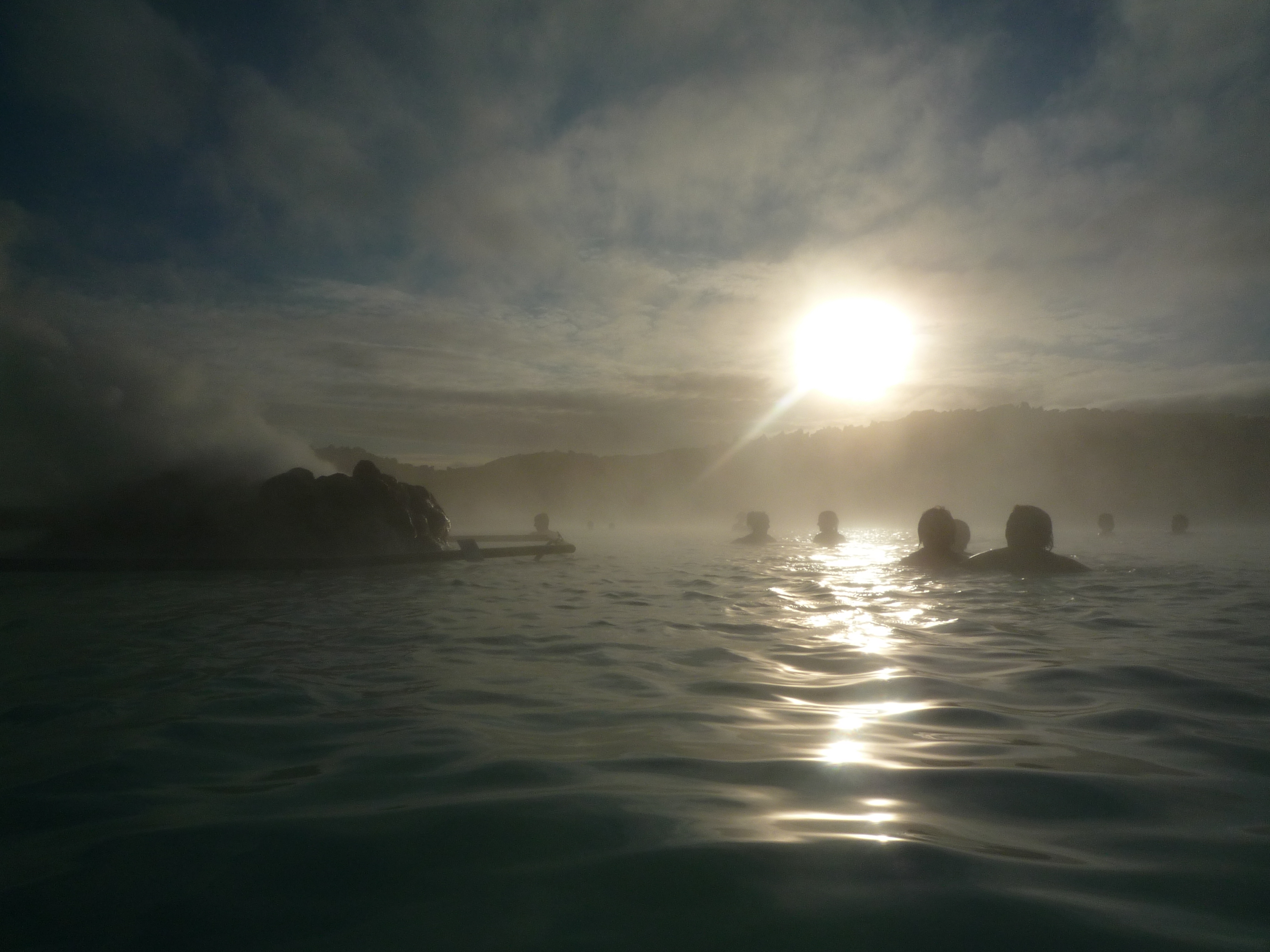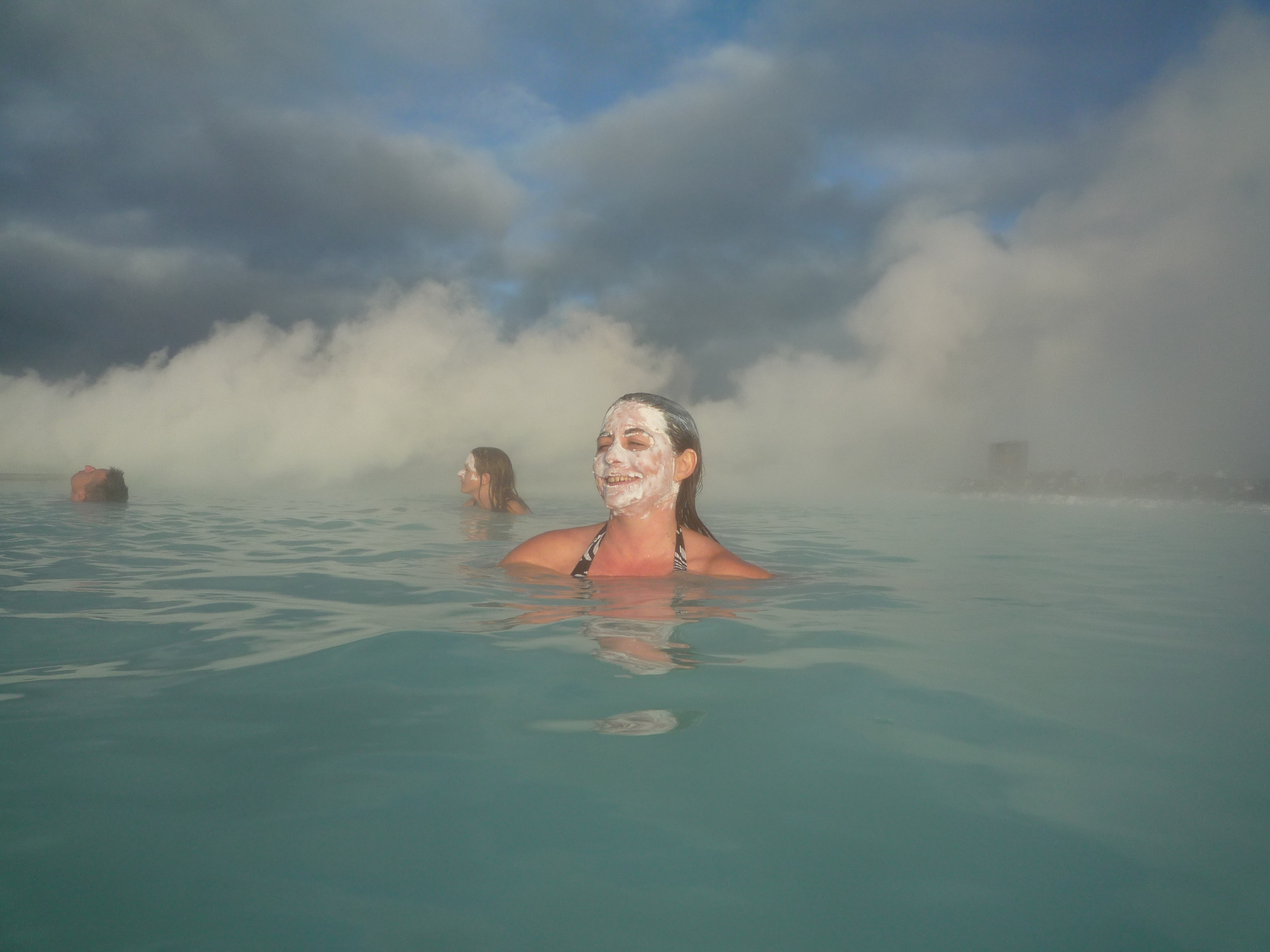Vous vous déshabillez dans des vestiaires d’une propreté immaculée (comme partout en Islande) ; vous sortez dans le froid ; vous vous immergez dans ce lait bleu, bouillonnant au feu des volcans souterrains.