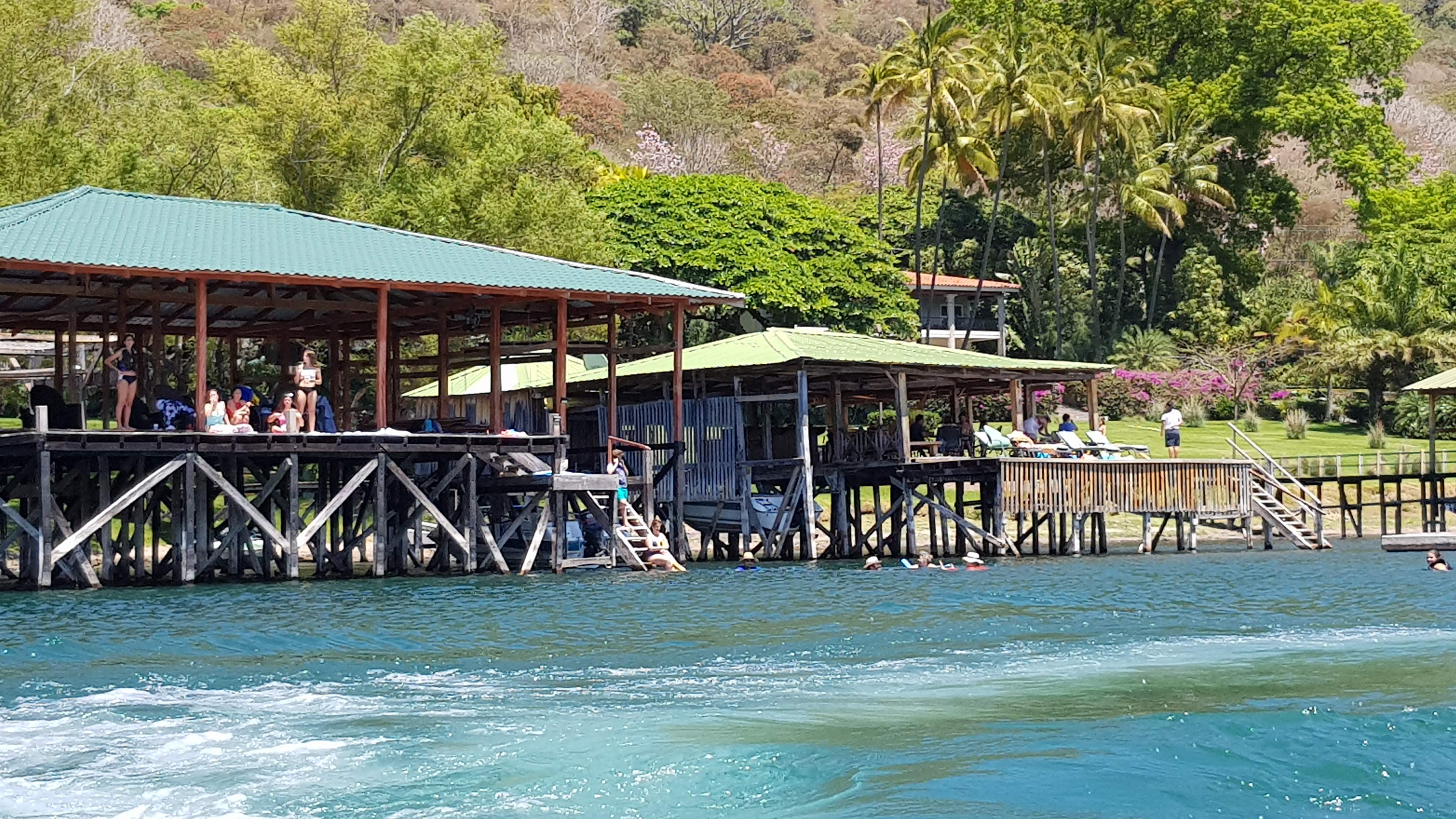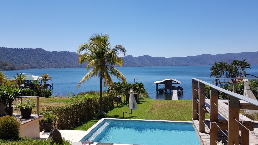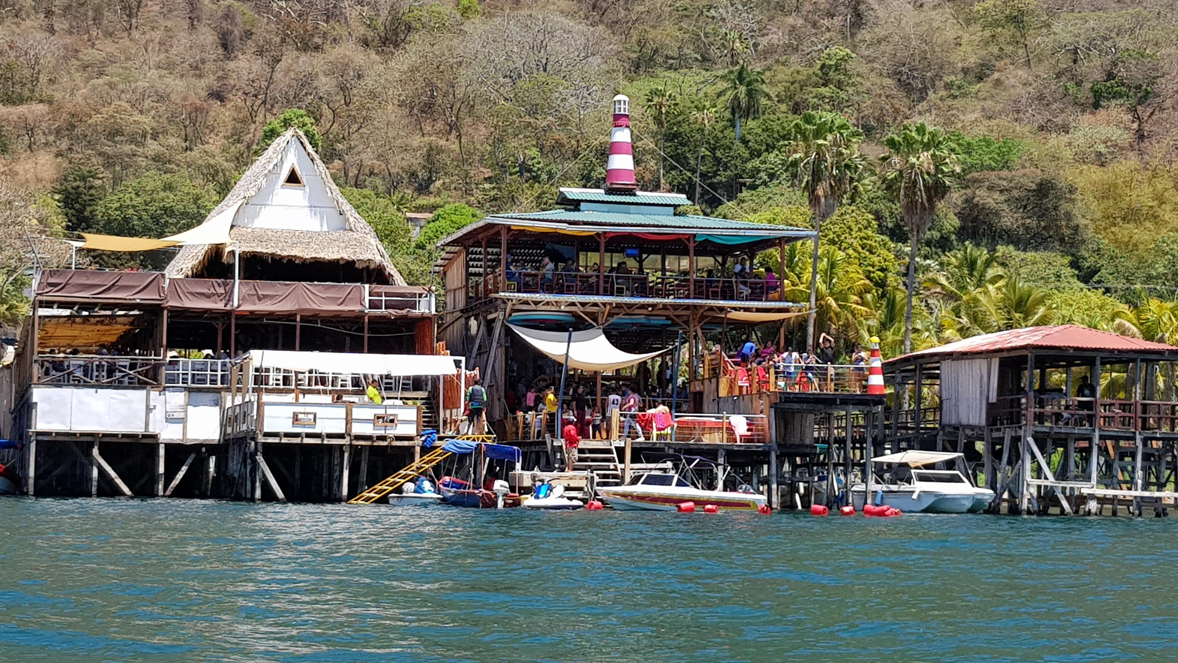 Si vous n’avez pas cette chance d’avoir des parents millionnaires (ou des amis expatriés ;) vous trouverez autour du lac plusieurs restaurants, avec ponton et ambiance musicale à fond, bourrés de Salvadoriens venus passer une journée à la plage. Certains sont plus “chics” que d’autres – bel hôtel avec piscine et terrasses qui descendent vers le lac, vastes paillottes au toit de paille sur des pontons, ou simple cabane poussiéreuse au bord de la route, avec vue sur le lac, quelques bancs sous un toit de tôle pour en jouir… et l’inévitable “pupuseria” pour vous substenter !