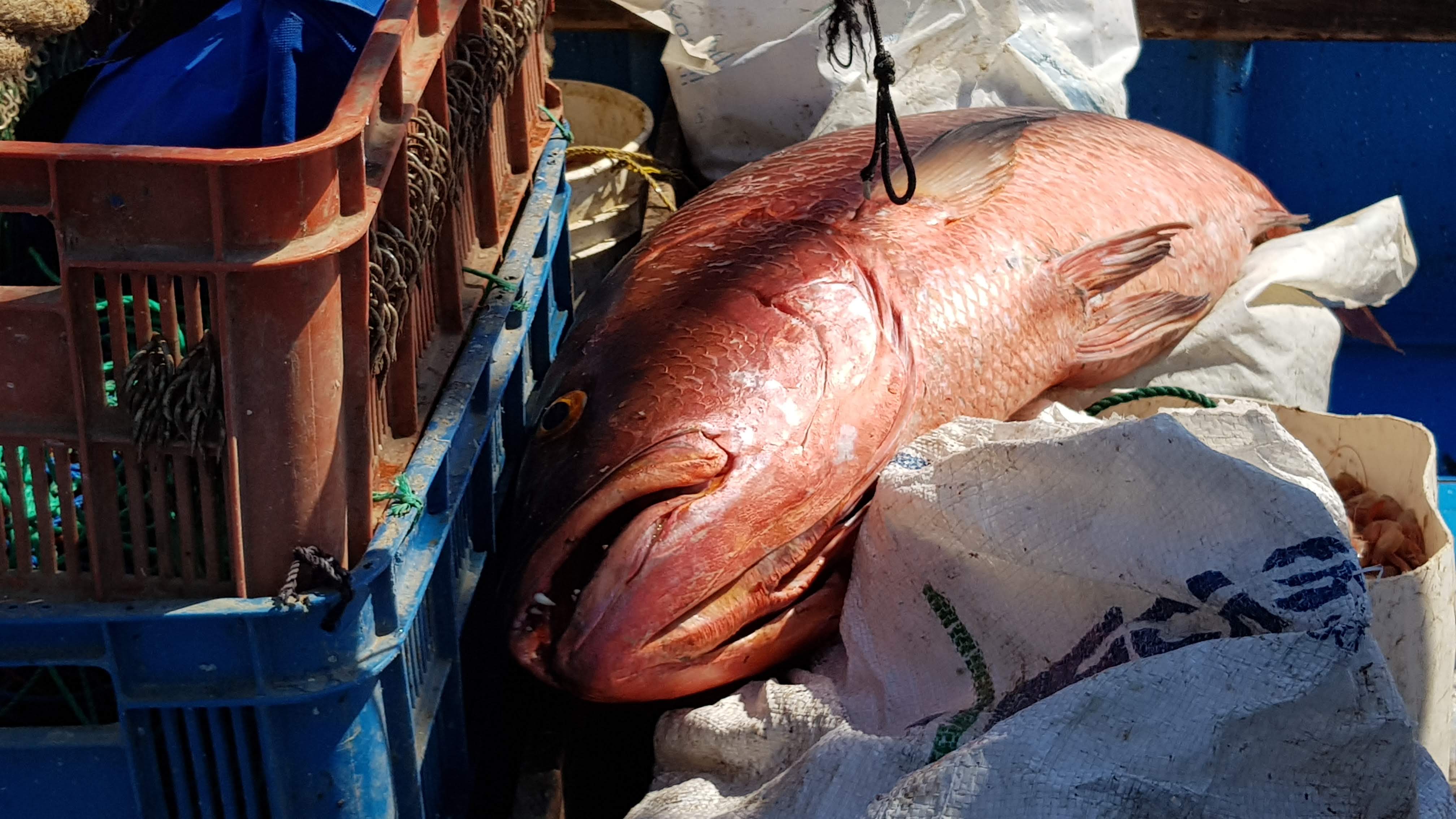 Au bout de la halle et de la jetée, des pêcheurs vendent directement, dans leur bateau tout juste revenu de la pêche, leurs prises du jour, au plus offrant.