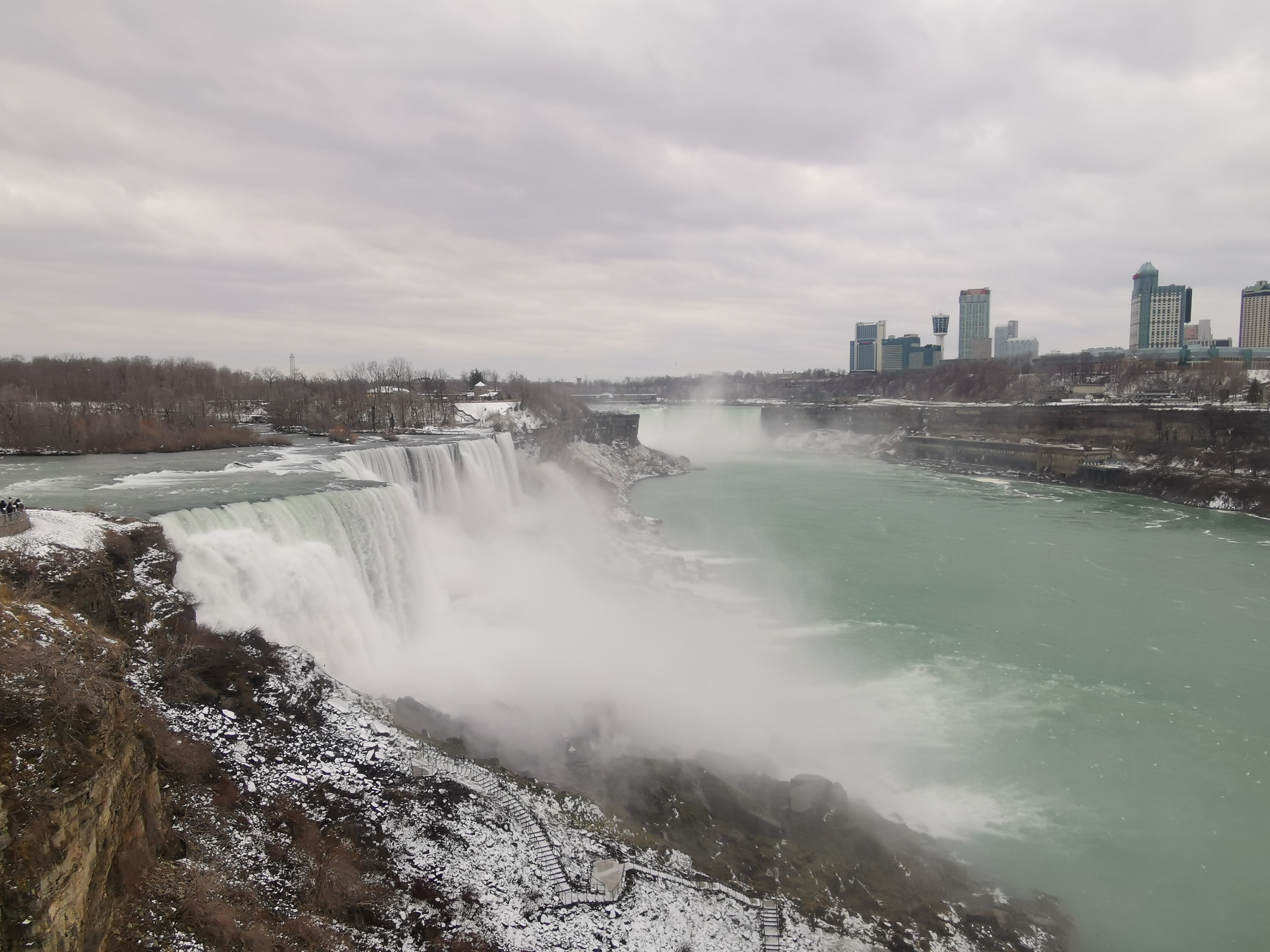 Niagara Falls, décembre 2022 : sur l'autre rive, l'inaccessible Canada ! les chutes du Niagara vues du côté américain, en hiver