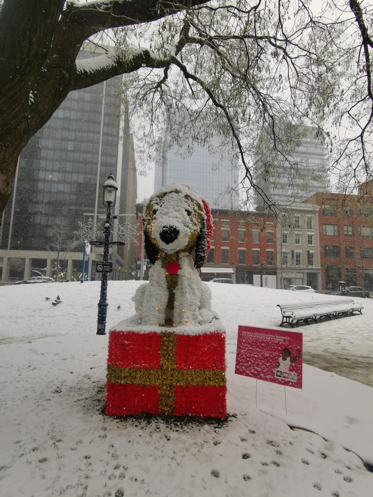 Quelques instants avant de tomber sur l’oeuvre inénarrable qui est donc devenu le « clou » du parc Berczy, je m’étais justement fait la réflexion que les chiens pullulaient à Toronto ! Visiblement, les Canadiens les aiment !
