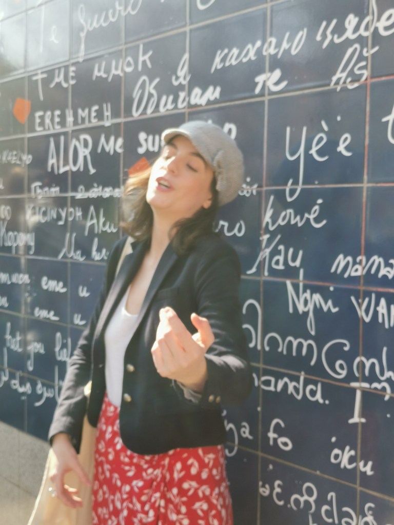 Cette jeune chanteuse professionnelle, pleine de vie et de gaieté, vit dans le quartier et se passionne pour son histoire comme pour celle de la chanson française. Elle a donc eu la belle idée de concilier ses deux passions en concevant une visite guidée de la Butte, en chansons. Et comme les plus belles chansons sont toujours d’amour… on commence tout naturellement la visite au pied du mur des « Je T’aime », cette œuvre originale de Frédéric Baron et Claire Kito, devenue l’incontournable rendez-vous romantique de la capitale, dans le petit square Jehan Rictus qui jouxte la place des Abesses. Anne-Sophie Guerrier raconte la gestation de cette fresque géante qui s’étale sur 612 carreaux en lave émaillée, éclaboussés du rouge d’un cœur brisé, parsemés de 311 déclarations d’amour en 250 langues. Histoire de rappeler à l’humanité déchirée que rien n’est aussi important que l’Amour… et justement, sans crier gare, voilà que vibre l’immortel refrain de Jacques Brel. « Quand on n’a que l’amour, pour parler aux canons… et rien qu’une chanson, pour convaincre un tambour… »